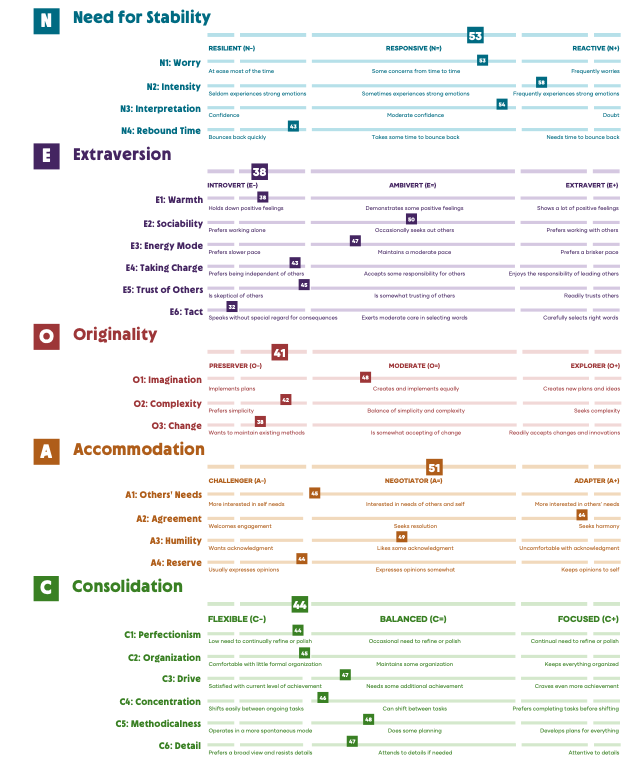 Official license from Paradigm Personality Labs, with a full report covering 5 Supertraits and 23 Subtraits.